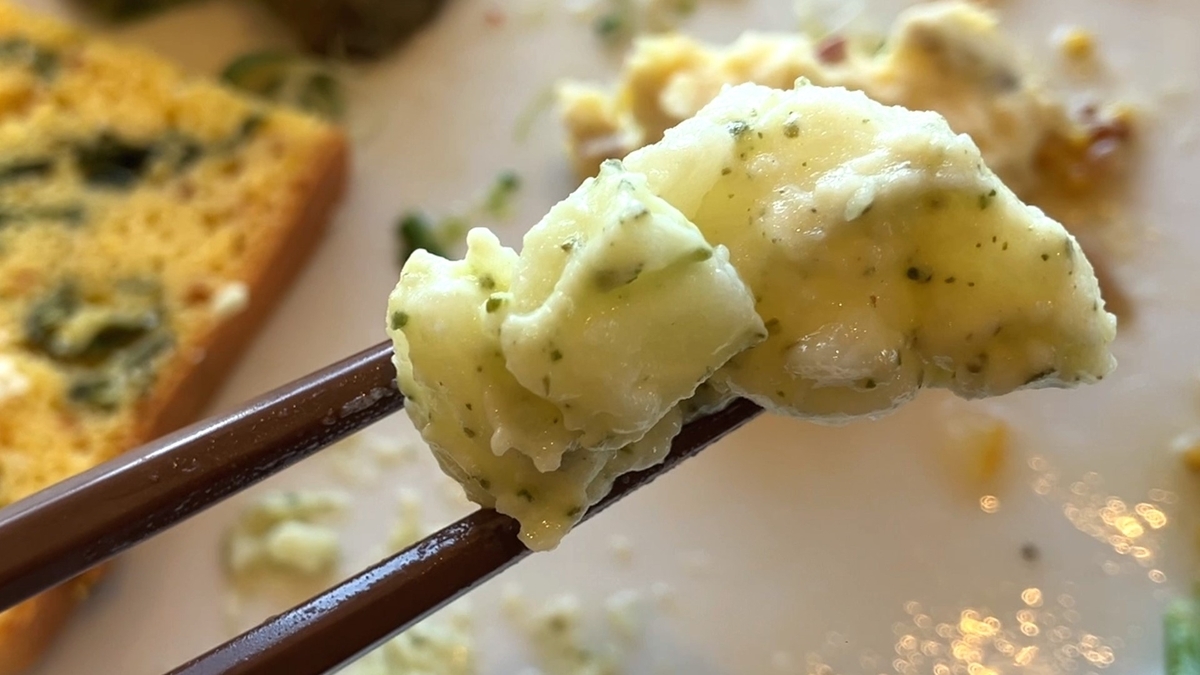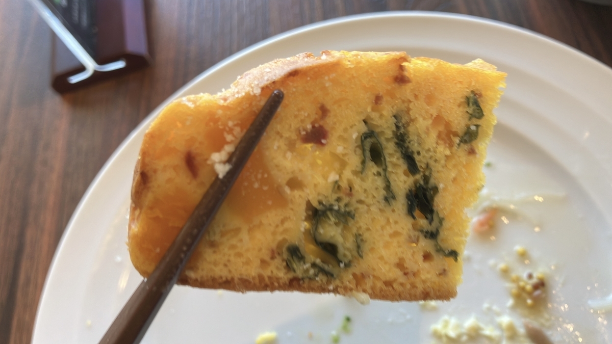 ほうれん草の味は感じなかったです。しっとりモチモチ。表面は粉っぽいですかね。