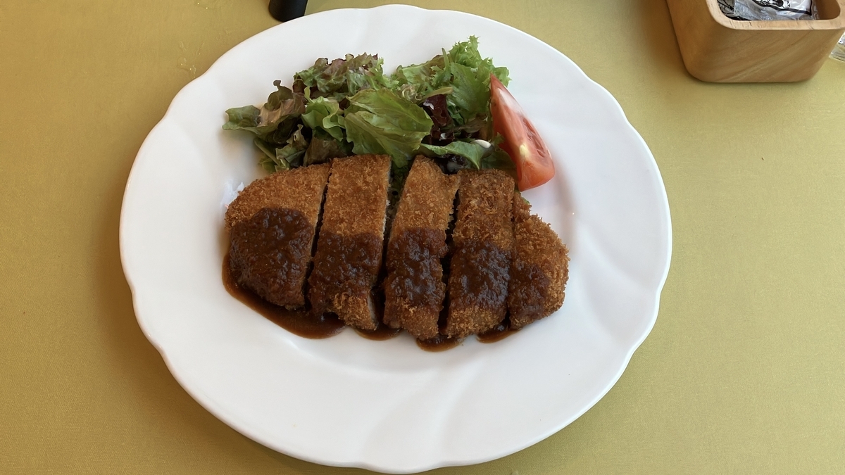 厚過ぎず薄過ぎず程よい。脂身もしっかりあるので、付け合わせのサラダがさっぱりできて良い仕事してます。