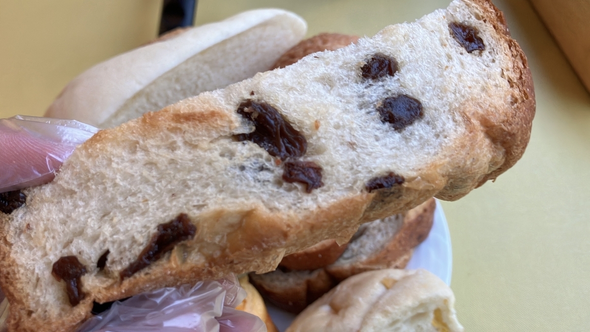 レーズンたっぷり。レーズンの甘味を感じられるパン。ラムが全く気にならなかった。万人受けするレーズンパンです。